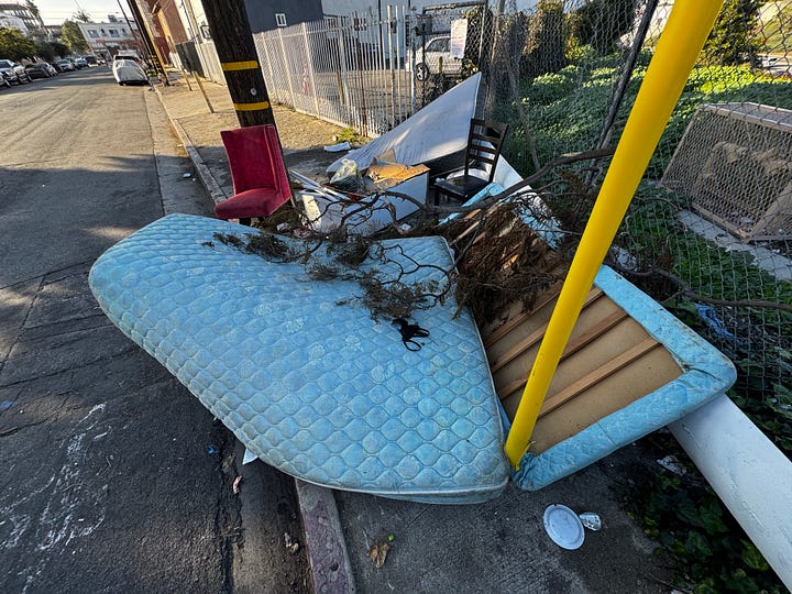 “Once homelessness really got bad, these bulky items were within an hour of becoming an encampment,” Stephanie said. She drove her streets looking for illegal dumps, bulky items left on corners – reporting their locations to the city’s 311 line.